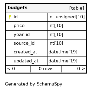 | Column | Type | Size | Nulls | Auto | Default | Children | Parents | Comments |